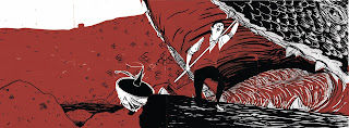 I'm bashing my head against a wall right now. This is the closest I have to a vaguely acceptable composition for the ending pages of the book, and there's a whole 'nother character to go in. I may extend the jaw further, and the colours are to change around at some point for legibility. I should have picked a simpler story.